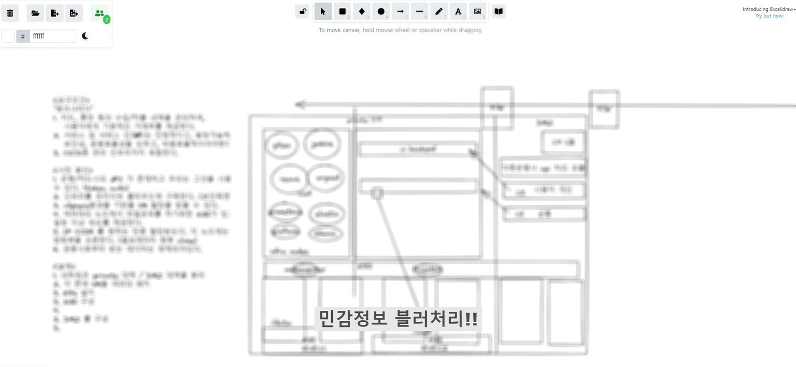 https://excalidraw.com/라는 사이트를 활용해서 말로 정리가 어려운 아키텍쳐와 관련한 내용들을 서로 공유되는 스케치보드를 통해 슥슥 그리며 대화를 나눴던 부분이었다. 온라인으로 회의를 할때 아키텍처에 대해서 스케치 할 때 유용한 툴을 찾은것 같아서 좋았다.