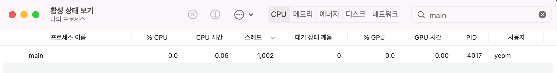실제로 아래와 같은 코드를 실행하면, 1002개의 스레드가 생성되어 실행되는 것을 볼 수 있다.
