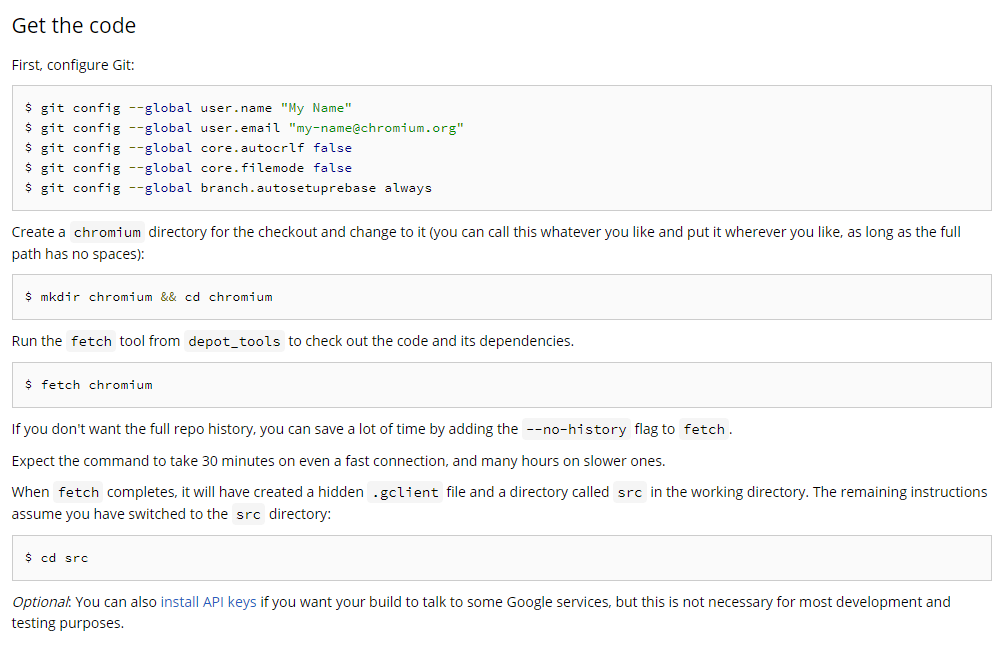 사실 크로미움 프로젝트 홈페이지에서는 크로미움 설치파일을 별도로 제공하지 않습니다.