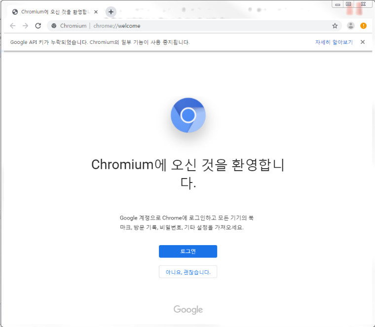 이상하게 제가 받은 최신의 크로미움 버전에는 구글 로고가 보입니다만...) - 사용자 식별 인증키 설정 요구사항